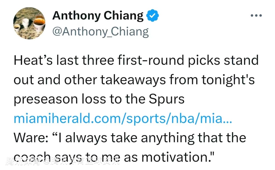 关于自己的状态,韦尔说道:“我一直把教练对我说的每一句话都当作激励,会把它们融入到比赛中,让自己打得更努力。就像我上次说的,训练营期间我还在慢慢恢复双腿的力量。”